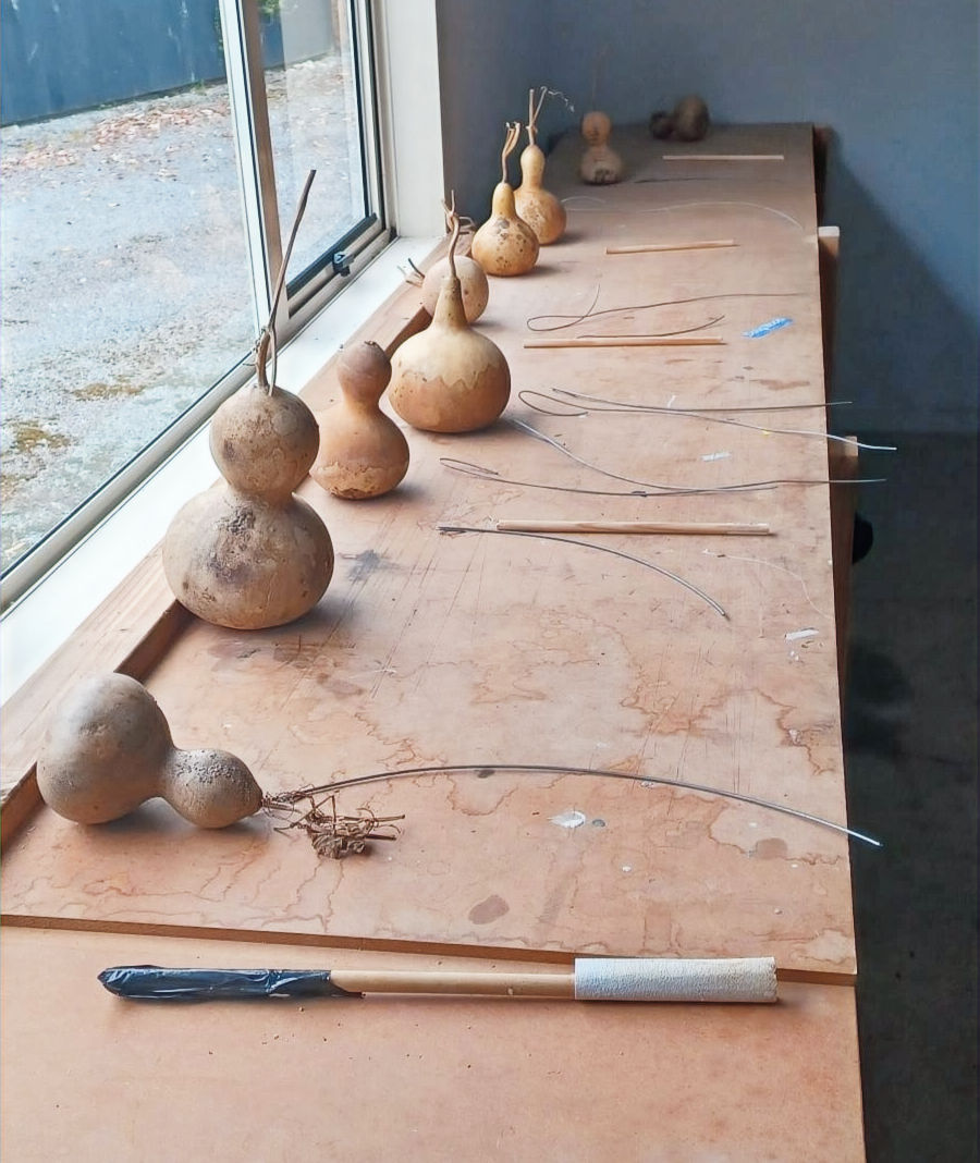 We spent our afternoon creating our first taonga puoro. We made poi awhiowhio. Joe had set up the workshop for this task with a range of hue to chose from. Everyone under Joe's guidance dove in transforming the hue into the taonga that we were all able to take back into our own worlds.